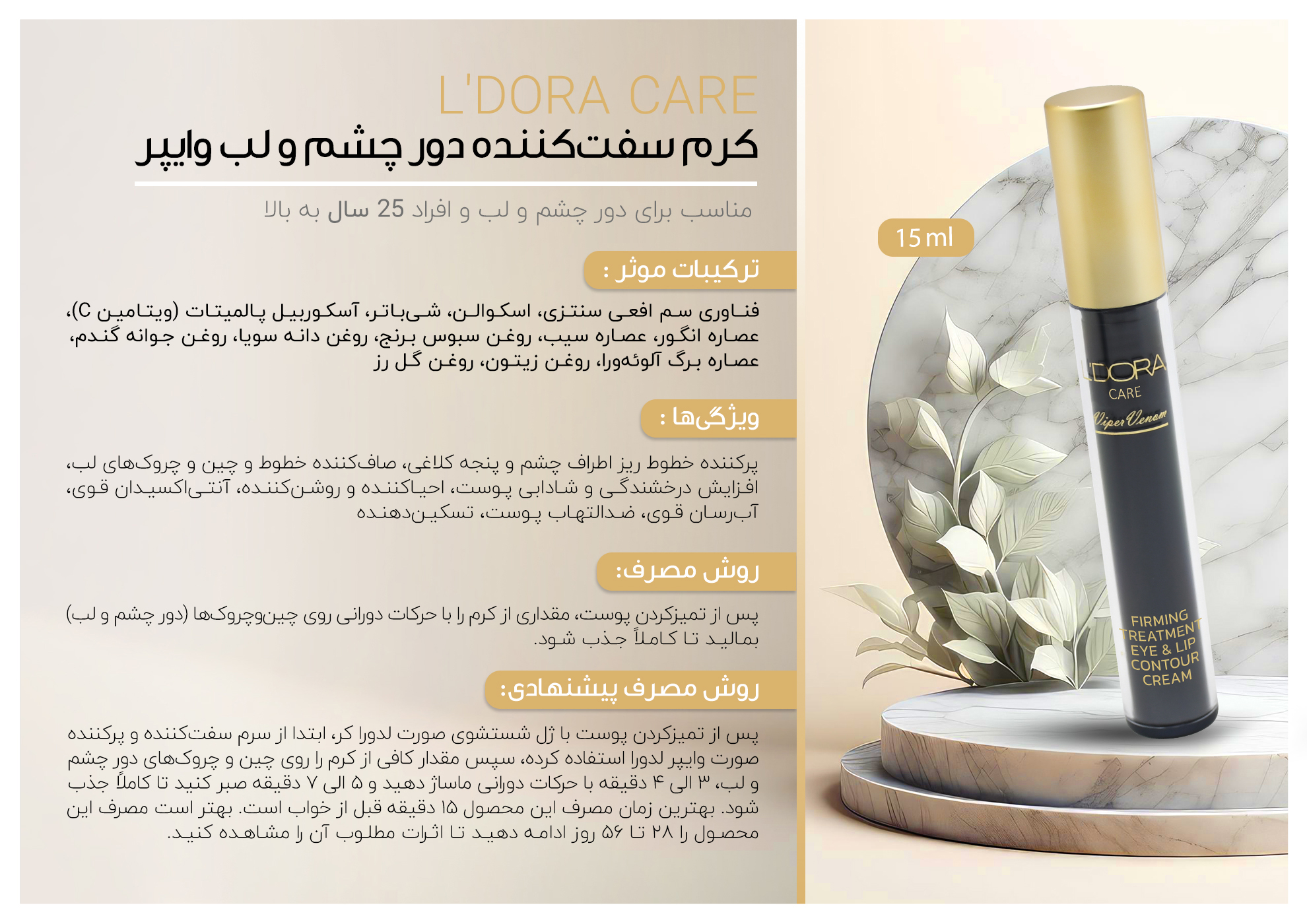 کرم سفت کننده دور چشم و لب وایپر لدورا، 15 میلی لیتر
