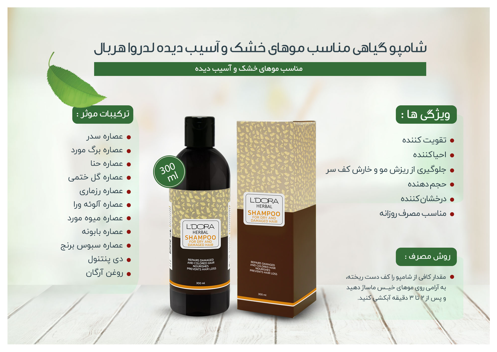 شامپو گیاهی مناسب موهای خشک و آسیب دیده لدورا هربال 300 میلی‌لیتر