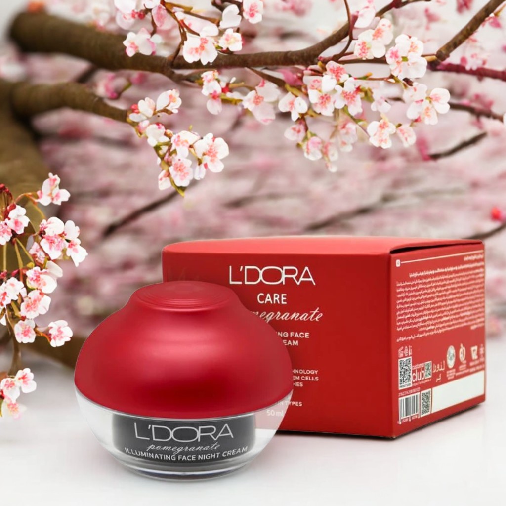 کرم روشن کننده شب صورت و گردن انار مناسب انواع پوست لدورا، 50 میلی لیتر